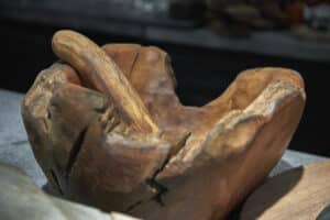 Emphasizing the wood’s texture, this handcrafted design highlights the unique grain pattern of the teak root.